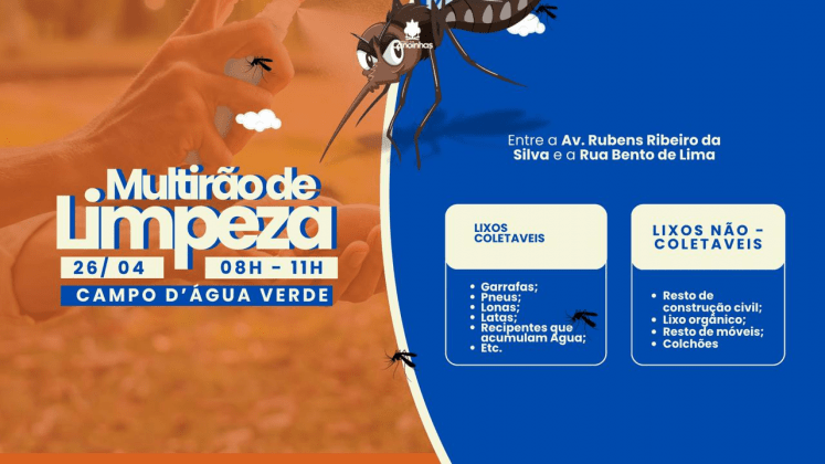 A Secretaria Municipal de Saúde vai realizar mutirão de limpeza no Campo d’Água Verde, em Canoinhas, no próximo dia 26. A ação será realizada entre a avenida Rubens Ribeiro da Silva e a Bento de Lima Serão recolhidos resíduos que acumulem água como pneus, garrafas, lata, lona velha. Não serão retirados resto de construção civil, […]