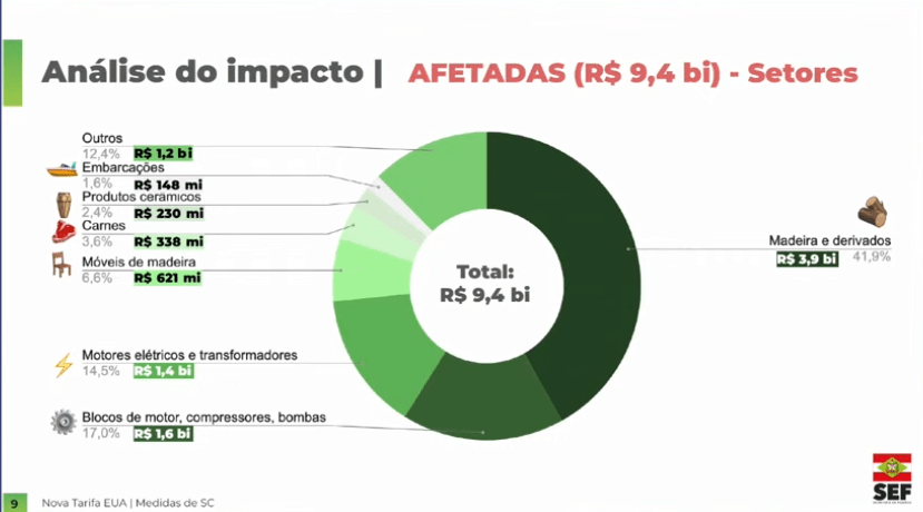 As cadeias mais afetadas pelo tarifaço / Reprodução / SEFSC