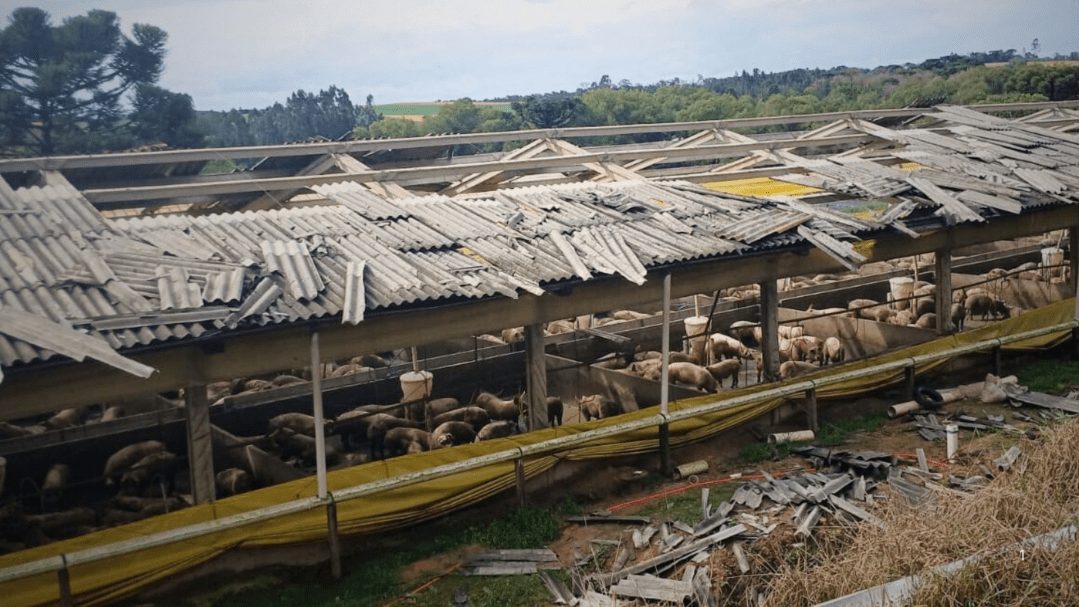 Segundo a atualização divulgada às 18h, foram registradas cinco residências danificadas, um pavilhão de igreja e duas granjas de suínos atingidas. Também houve queda de 15 árvores em vias municipais e outras sete na BR-280, além de uma árvore que atingiu uma residência. Duas estradas seguem interditadas.